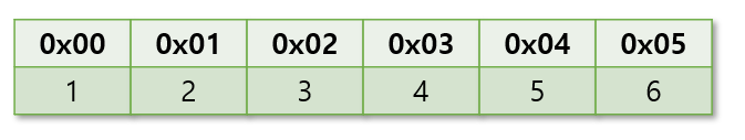 배열은 요청한 크기 만큼을 한 번에 메모리에 할당해주기 때문에 위와 같이 메모리가 연속적으로 이루어져있다.