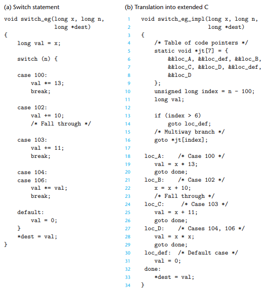 switch문을 사용하면 C 코드를 읽기 쉽게 해줄 뿐만 아니라 점프 테이블을 사용해서 효율적인 구현을 가능케 한다.
