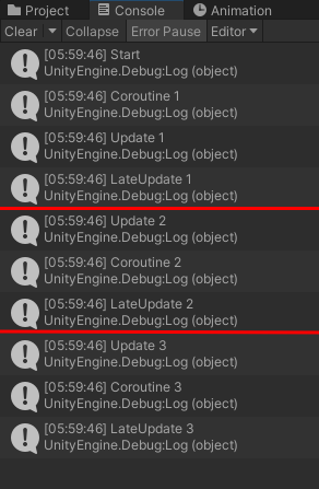 Debug.Log("LateUpdate " + lateUpdateCnt++);