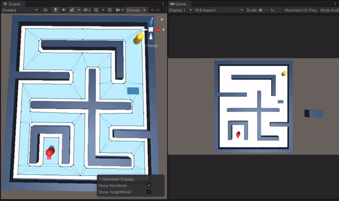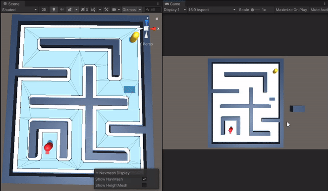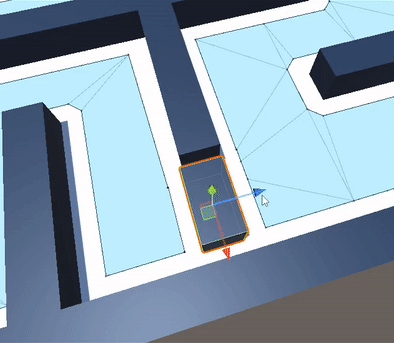 NavMesh에 접촉하고 잠시 뒤, NavMesh가 동적으로 수정되면서 Agent가 다른 경로를 찾아가는 모습이다.