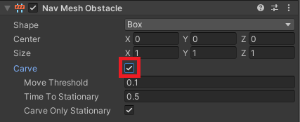 NavMeshObstacle 컴포넌트의 Carve 속성에 대해 더 알아보자.